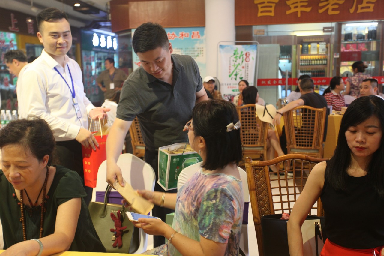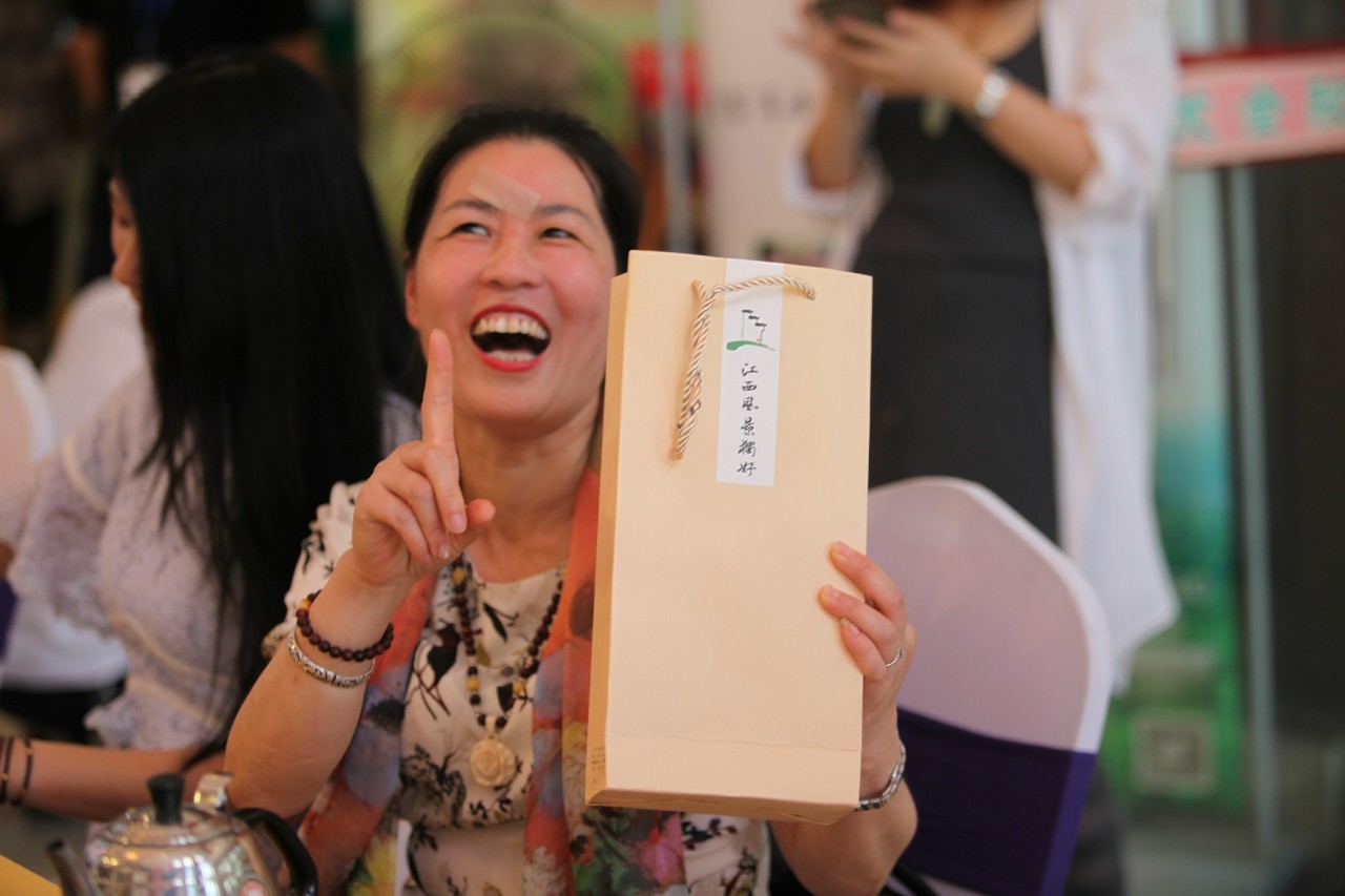 在专家评审团上台对茶样进行评审并打分的同时,我们现场也准备了与观众们的互动环节,微信抢红包赢茶礼,抢到红包并且手气最佳者将获得我们随手礼一份。除了激烈的抢红包游戏之外,我们还在现场进行0元竞拍多款江西名茶及精美茶杯,观众们兴致勃勃、踊跃参与,现场叫拍声此起彼伏,热闹非凡,气氛十分热烈。在活动最后,鹿鼎国际(南昌)茶叶交易市场总经理饶鸿石还为现场观众发放随手礼,让每位观众都乘兴而来、满载而归。